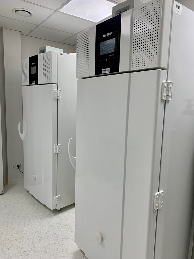 - Zamrażarki niskotemperaturowe z systemem rejestrowania temperatury, monitorowania i powiadamiania o stanach alarmowych. Oddział dysponuje dwoma lodówkami do -86⁰ C oraz jedną do -30⁰ C.