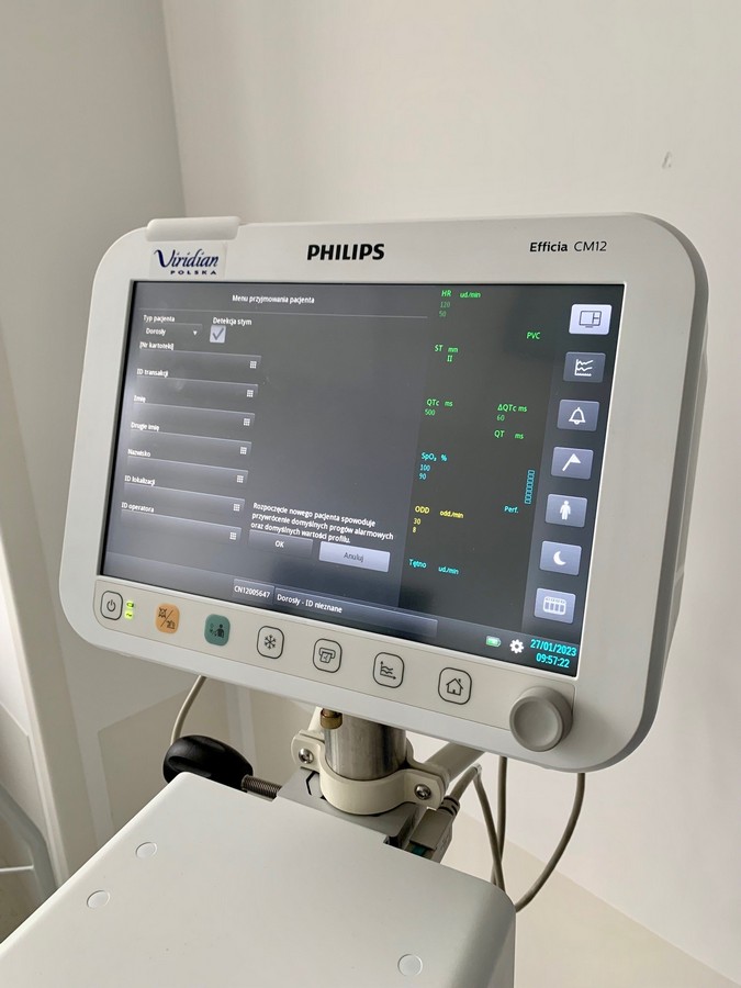 - Kardiomonitor Philips Efficia CM12 – przyłóżkowy kardiomonitor, służący do monitorowania i przesyłania kluczowych informacji dotyczących pracy serca pacjenta. Dzięki nim możliwa jest szybka pomoc w nagłych sytuacjach (2 sztuki na oddziale).