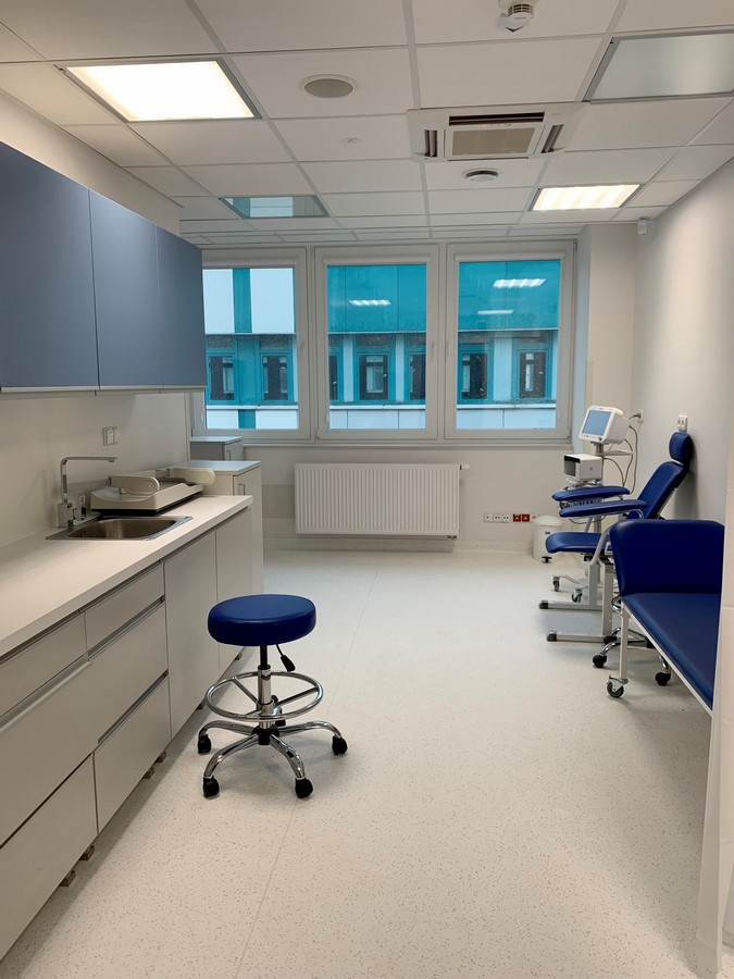 - Stanowiska dla pacjentów na wizyty ambulatoryjne, oddział dysponuje 4 stanowiskami